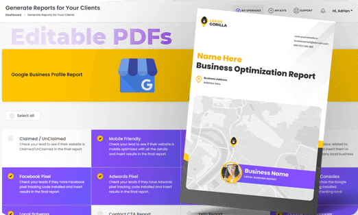 Impress clients with ready-to-go reports: Google Business, Facebook Reputation, SEO, Citations, and Core Web Vitals. Fully brandable with your logo and colors, so you look like the authority.