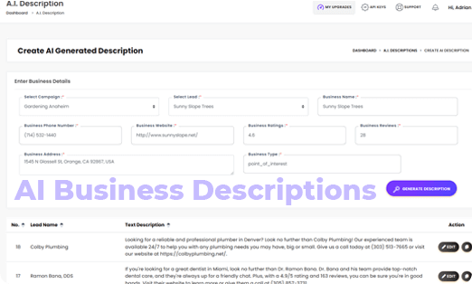 AUTOMATICALLY generates SEO-optimized business descriptions.